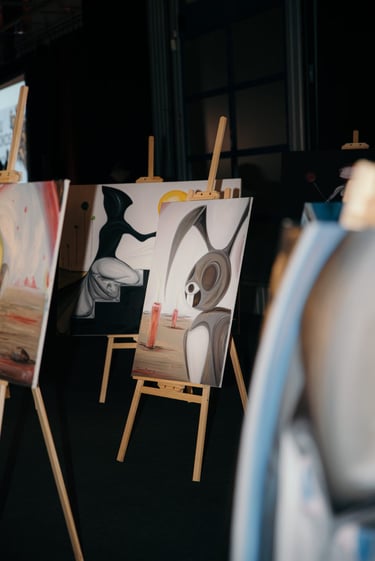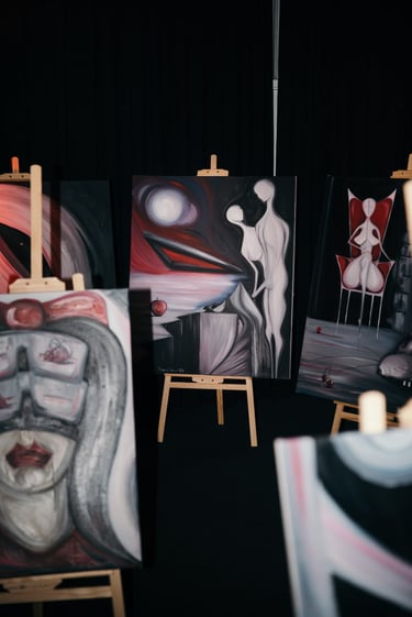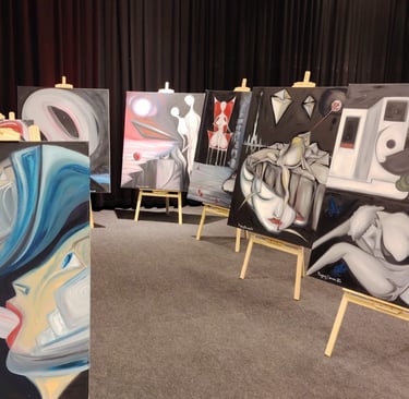 The series I showcased is rooted in my visions – inner images that appear like fragments of another world. Through them, I explore themes of light and darkness, illusion and truth, the boundary between the human and the non-human. Each painting is a moment captured from a larger story, a piece of a visual narrative that continues to unfold through symbols, color, and atmosphere.